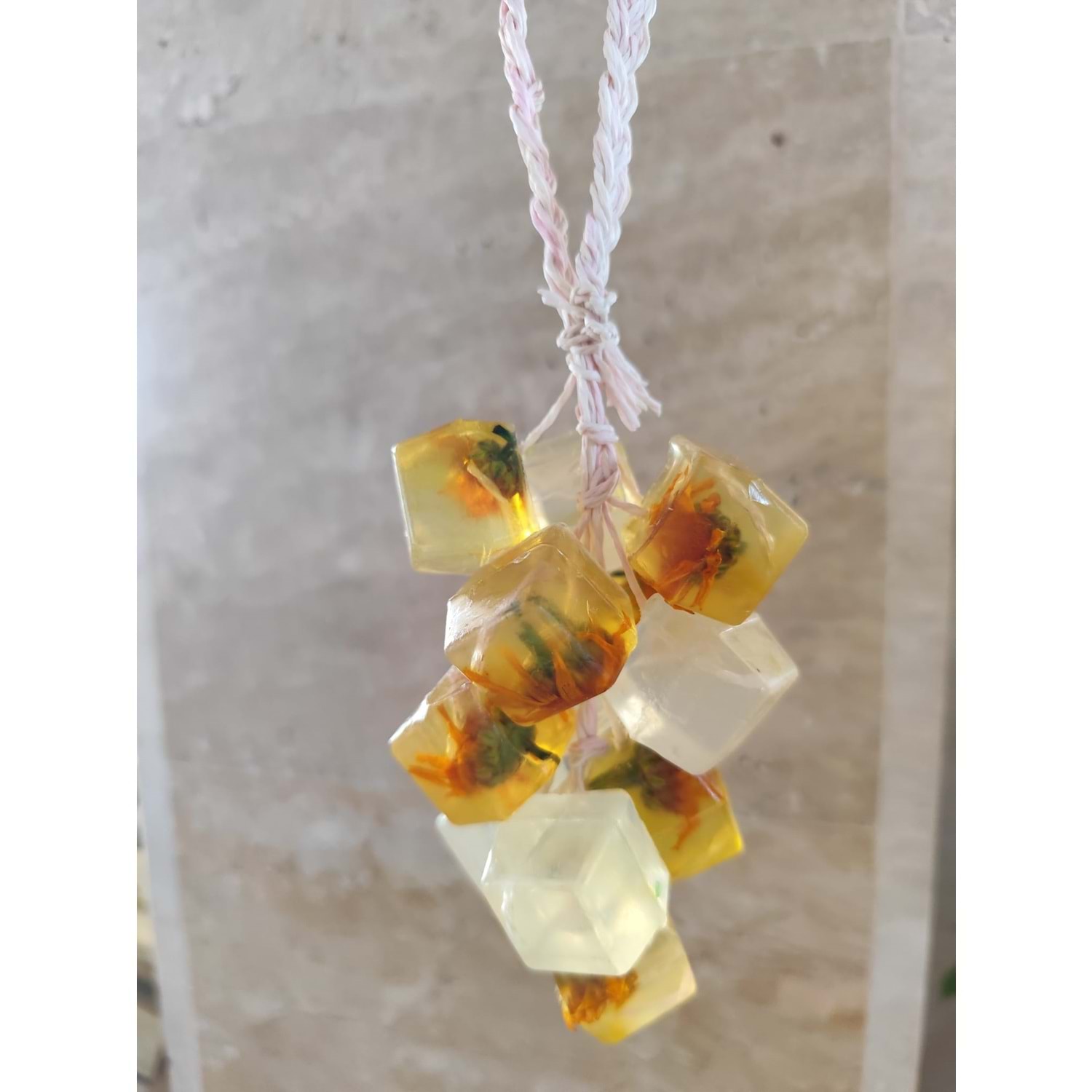 Doğallığın sade güzelliğini yansıtan papatyalı şeffaf salkım sabunumuz, zarif tasarımıyla dikkat çeker. İçerisinde yer alan papatya detayları ve kristal görünümlü yapısı sayesinde banyonuza estetik ve ferah bir dokunuş kazandırır.