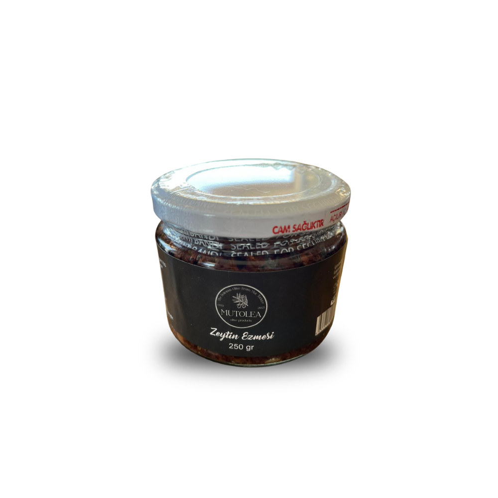 Mutolea El Yapımı Zeytin Ezmesi, Akdeniz’in güneşinde olgunlaşan siyah zeytinlerin çekirdekleri çıkarılarak geleneksel taş değirmenlerde ezilmesiyle hazırlanır. Koruyucu, katkı maddesi ve renklendirici içermez. Sadece doğal zeytin, zeytinyağı ve tuzun uyumuyla sofralara sağlıklı bir lezzet sunar.